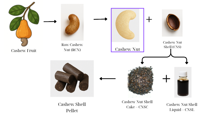 Việt Nam là một trong những quốc gia xuất khẩu điều lớn nhất thế giới. Quá trình chế biến hạt điều để lấy nhân đã tạo ra một lượng lớn vỏ điều. Sau khi ép lấy dầu vỏ điều (CNSL), phần còn lại chính là bã vỏ điều ép – một loại nhiên liệu sinh khối (biomass fuel) có giá trị nhiệt cao, ổn định và đang ngày càng được ưa chuộng trong công nghiệp.